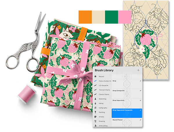 Ready to design professional repeat patterns with confidence and build a versatile licensable portfolio in just 5 weeks? With the «Pattern Builder Kit», you’ll master creating cohesive collections while exploring Procreate.